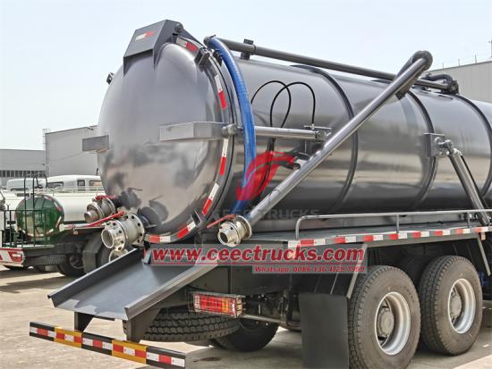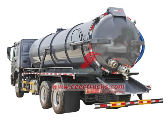 Новодизајнирани CEEC TRUCK камион са 10 точка и 18 цм3 HOWO вакуум цистерном је моћно и ефикасно решење за санитацију, дизајнирано за ефикасно уклањање и транспорт течног отпада. Изграђен на чврстој и поузданој HOWO шасији са погоном 6x4, овај вакуумски камион је опремљен за руковање захтевним теренима и захтевним условима рада. HOWO камион са усисном пумпом од 18.000 литара истиче се као поуздано и робусно решење за санитацију и управљање отпадом. Са фокусом на перформансе, издржљивост и усклађеност са стандардима емисије, овај канализациони септички камион је добро опремљен за решавање изазова уклањања течног отпада у различитим условима.