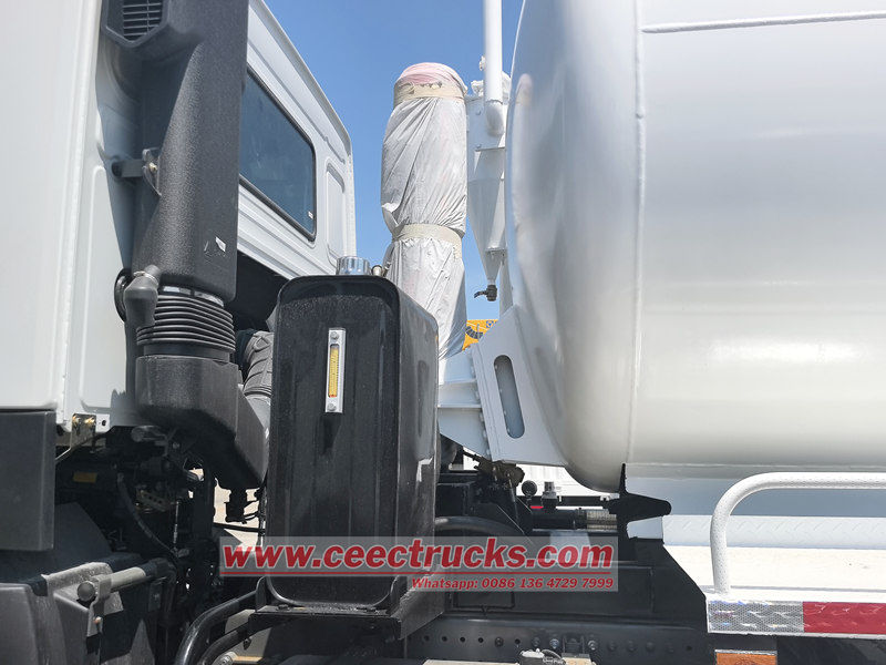 Вакуумска цистерна Howo од 20.000 литара базирана је на шасији HOWO 6x4, са међуосовинским растојањем од 4325+1350 мм, гумама 12.00R20 са укупно 11 комада, опремљена је дизел мотором WP12.400E32 од 400 КС и мењачем HW19710, са 10 брзина за вожњу напред, 2 брзине за вожњу уназад, управљачким механизмом ZF8198, који је снажан и једноставан за руковање. Има функције самоусисавања, самопражњења и самопражњења. Има снажно усисавање и високу ефикасност, тело резервоара се може брзо напунити и ефикасно испразнити у једној операцији.