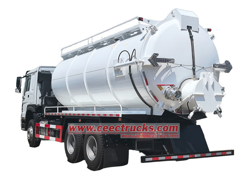● Howo камион за усисавање од 20.000 литара користи хидраулични систем управљања за флексибилан и једноставан рад. Возач или оператер може да заврши процес усисавања и истовара једноставним притиском на дугме или полугу.