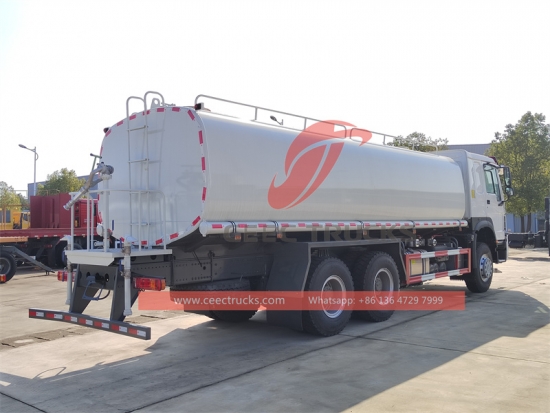 Камион за воду од 20.000Л Хово, шасија са воланом на левој страни Хово 6к4, ручни мењач са 8 брзина, дизел мотор ВД615.47 371КС, водена пумпа познатог бренда, са предњом, средњом и задњом млазницом за прскање по избору. Све слике и логотипи зависе од захтева.