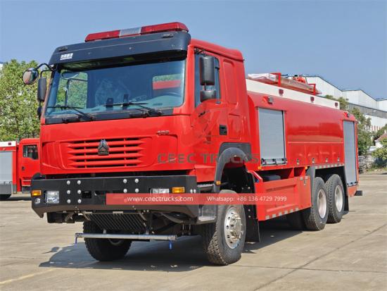 All-drive systemВатрогасна цистерна Хово 6к6 је савршена комбинација моћних перформанси, изузетне израде и предности практичне примене. Овај ватрогасни камион Хово опремљен је Исузуовим моћним мотором ВД615.47, са снагом од 371 коњских снага и системом погона на сва четири точка 6к6 који је довољан да се носи са разним хитним ситуацијама. Његова максимална брзина може да достигне 95 км/х, што осигурава да ватрогасци брзо стигну до пожаришта. Капацитет ватрогасне цистерне Хово 6к6 - 55 литара/секунди протока пумпања и домета од 55 метара довољни су да се изборе са већином пожара. Капацитет резервоара за воду од 8000 литара и резервоар за пену од 1500 литара дају довољну гаранцију за континуирану борбу. Шасија од специјалног челика високе чврстоће обезбеђује стабилност конструкције возила. Одељак за опрему направљен од легуре алуминијума није само лаган, већ и никада не рђа, што значајно продужава његов радни век. Резервоар за течност направљен од ПП композитног материјала је лаган и издржљив. Сваки детаљ показује изузетну израду, од роло врата са дизајном олука за кишу до педале са дизајном против клизања, што све одражава пажљиво разматрање безбедности и погодности ватрогасаца.