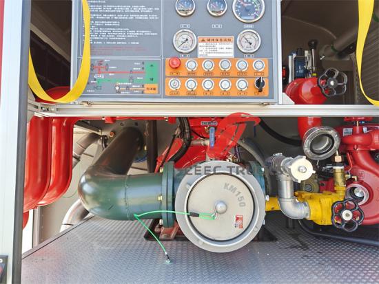 3.Перформансе пумпног система и надзора пожара: Систем пумпи високих перформанси је срце ватрогасног возила. Систем пумпи Хово Фире камиона може да обезбеди проток од 60Л/с@10бар, што је кључно у операцијама гашења пожара. Истовремено, висина апсорпције воде од 9 метара и време скретања воде од ≤35с такође осигуравају прилагодљивост у различитим сложеним окружењима. Монитор пожара монтиран на врху (као што је домет воде ≥55м и опсег пене ≥45м у овом случају) увелико повећава флексибилност и ефикасност гашења пожара.
