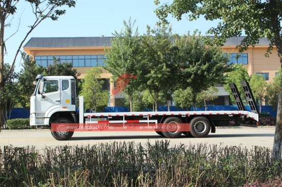 Афрички камион с равним платформама од 30 тона, ХОВО 6к4 ЛХД шасија, СИНОТРУК ручни мењач са 12 брзина, дизел мотор познатог кинеског бренда СИНОТРУК 400 КС, челична плоча високе чврстоће, са ХИВА или домаћим хидрауличним подизачем као опција. Све слике и логотипи зависе од захтева.
