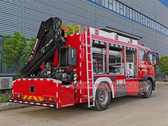HOWO 4x2 Mobile Lighting Fire Truck with knuckle CraneHOWO 4x2 средњи тендер за заштиту од пожара је опрема за ванредне ситуације са интегрисаним осветљењем, напајањем и функцијама дизања. Изграђена је на шасији Синотрук ТX350, опремљеног Националним VI мотором од 350 коњских снага и 8-степеним мењачем, комбинујући снагу и управљивост. Кров је опремљен интелигентним подизним осветљењем које може да покрије подручје у радијусу од 50 метара; интегрисани синхрони генератор од 50 kW подржава двоструко прекидање напајања и напајање опреме; кран са склопивим краком од 5 тона на задњем делу подржава 360°ротација и вишеструко подизање, погодно за спасавање, уклањање препрека, реконструкцију и друге задатке.