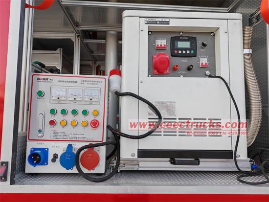 „Херој иза кулиса“ система осветљења је синхрони генератор од 50 kW и интелигентни контролер SmartGen. Генератор може континуирано да напаја 12 сати (пуно оптерећење), обезбеђујући ударну снагу за осветљење, машине за сечење, водене пумпе и другу опрему; контролер прати напон, струју и фреквенцију у реалном времену и аутоматски алармира и искључује напајање када је абнормално како би се спречило преоптерећење опреме. Трофазни/једнофазни прекидач опремљен на кутији је попут „чувара електричне енергије“, независно контролишући различита оптерећења како би се осигурала безбедност коришћења енергије опреме за спасавање.