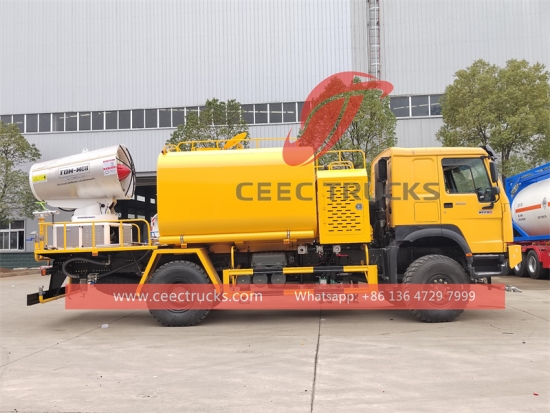 Камион са резервоаром за воду Хово 4к4 за сузбијање прашине је специјални камион дизајниран за рударска окружења и има моћне могућности сузбијања прашине. Главна сврха камиона цистерне са прскалицама за рударство Хово је да смањи загађење прашином настало током рударења кроз ефикасне мере за смањење прашине, чиме се штити животна средина и здравље радника.