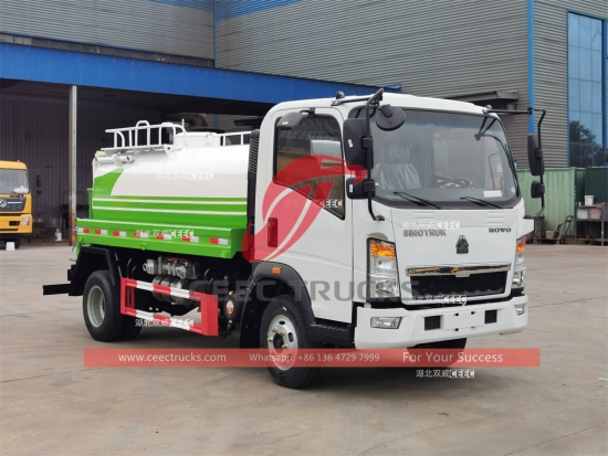 хово 5 кубних метара воде бовсер (такође се зовеХово камион за воду, Хово 5.000 литара Камион цистерна за воду, Хово 5 Цбм Камион са прскалицама за воду, Хово Камион за прскање воде, Камион за испоруку воде Хово) јекористи се за испирање путева, озелењавање дрвећа и травњака, чишћење високих зграда, изградњу путева и фабрика. Има функције испирања, заливања, транспорта воде и гашења пожара.