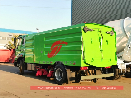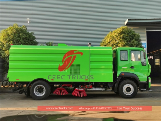 ХОВО камион за чишћење путева од 5000 литара, шасија са воланом на левој страни ХОВО 4к2, оперативни систем европске технологије, канта за прашину од нерђајућег челика и чиста вода, систем са 4 четке са италијанским мотором, са електричном контролом кабине за лак рад. Све слике и логотипизависи од захтева.