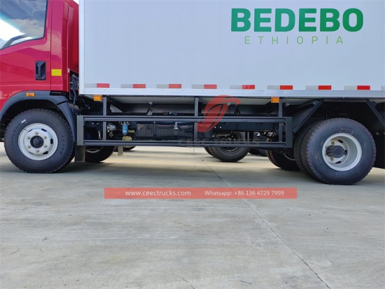 ХОВО 5 тона хладњача теретни комби (такођепозваниКомби хладњача ХОВО, ХОВО камион замрзивач, ХОВО камион хладњача, ХОВОцхиллер лорри, ХОВО комби камион за хлађење)користи се за транспорт робе која захтева хлађење или контролу температуре, као што су прехрамбени производи, лекови или друга кварљива роба. Ови комбији су посебно дизајнирани и опремљени са изолованим зидовима, расхладном јединицом и системом за контролу температуре како би се терет одржао на жељеној температури током транспорта.
