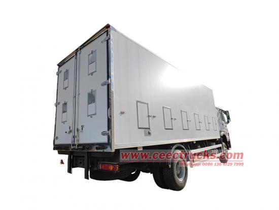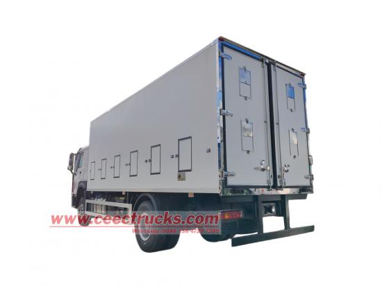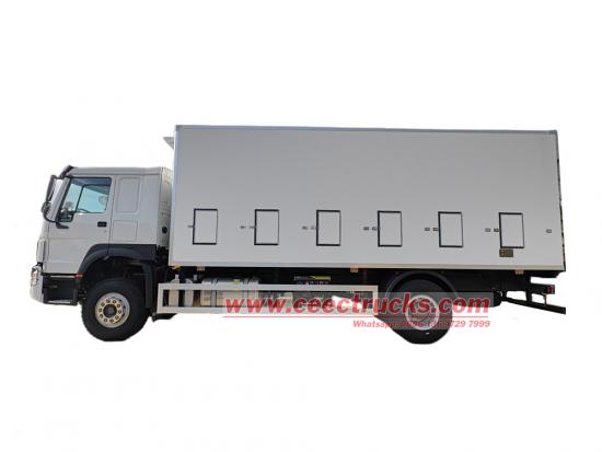 Камион са расхладом Howo 4x2 користи нову шасију Howo HW76 са предњом кабином, са међуосовинским растојањем од 4600 мм. Опремљен је мотором Weichai WP10.340E22 од 340 КС и 10-брзинским мењачем Sinotruk HW19710. Дужина расхладне каросерије је 6500 мм. × 2350 × 2500 мм, направљен од фибергласа са FRP + PU пеном + FRP панелом од 105 мм, са потпуно затвореним сендвич панелом, вратима која се отварају са десне стране, двоструким задњим вратима пуне величине и неклизајућим, отпорним на хабање подом. Користи CARRIER CITIMAX 1100 независну расхладну јединицу.