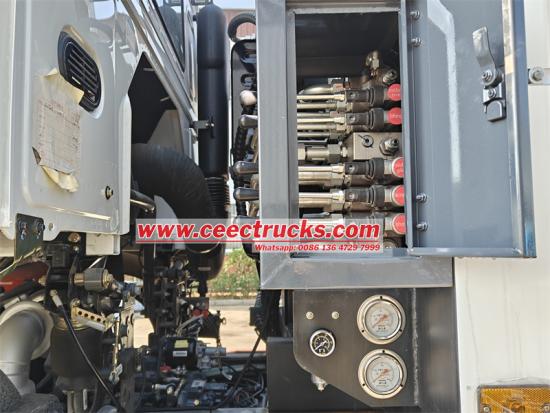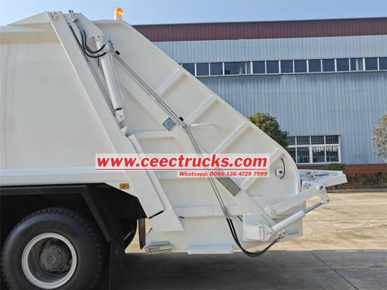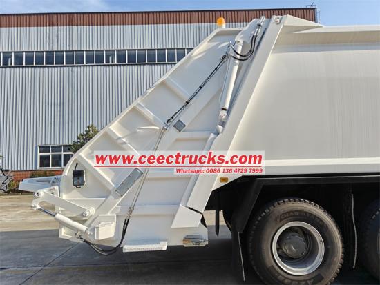 ТхеХово камион за набијање смећа за смеће усваја напредни 12 фронт и2 задњи мењач, у комбинацији са а6*4 погонски облик како би се осигурала стабилност и ефикасност у сложеним условима на путу. 20ЦБМ закривљено тело резервоара је направљено од специјалног челика К235, са дебљином тела резервоара од 4 мм и укупним процесом обликовања. Цомпглумац однос је чак 1:3,4, обезбеђујући крајњи компглумац ефикасност. Потпуно аутоматски хидраулички контролни систем има једно време циклуса пуњења и истовара од само 40-45 секунди, и опремљен је интелигентном контролом ПЛЦ-а, којом се лако и брзо управља. У ручном режиму, оператер може да користи ручицу за управљање и електрична контролна дугмад да заврши операције као што је компглумаци истовар простора за смеће.