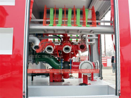 Large capacity water tankХауо8x4 ватраборбе Камион је савршена комбинација снажних перформанси, изврсне израде и практичних предности примене. Овај ватрогасни камион Howo опремљен је снажним мотором MC13.54-50, са снагом од540 коњских снага и а8x4 погонски систем који је довољан да се носи са разним ванредним ситуацијама. Његова максимална брзина може достићи 95 км/х, осигуравајући да ватрогасци могу брзо да стигну до места пожара.угасити пожарКапацитет Хоуа4x4 ватрогасна цистерна -6проток пумпе од 5 литара/секунду и6Домет од 5 метара је довољан за гашење већине пожара.8000 капацитет резервоара за воду од литара и3000Резервоар пене од литара пружа довољну гаранцију за континуирану борбу. Шасија направљена од специјалног челика високе чврстоће обезбеђује стабилност структуре возила. Одељак за опрему направљен од легуре алуминијума није само лаган, већ никада не рђа, што значајно продужава његов век трајања. Резервоар за течност направљен од ПП композитног материјала је лаган и издржљив. Сваки детаљ показује изврсну израду, од роло врата са дизајном олука за кишу до педале са дизајном против клизања, што све одражава пажљиво разматрање безбедности и практичности ватрогасаца.