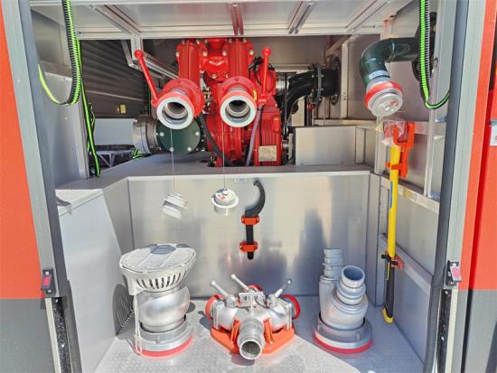 Ватрогасна пумпа високих перформанси– Садржи ватрогасну пумпу ЦБ10/80 са излазом од 4.800 Л/мин на 10 бара, обезбеђујући снажно и поуздано пражњење воде/пене. Опционо да буде ватрогасна пумпа бренда Дарлеи и ХАЛЕ