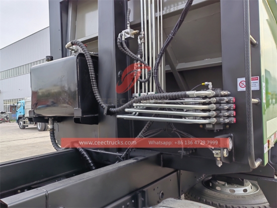 Састоји се од херметичког резервоара за смеће, хидрауличког система, оперативног система. Цео камион је херметичан, може аутоматски да компримује и испушта смеће, а отпадне воде настале у процесу компресије иду у резервоар за отпадну воду. |
