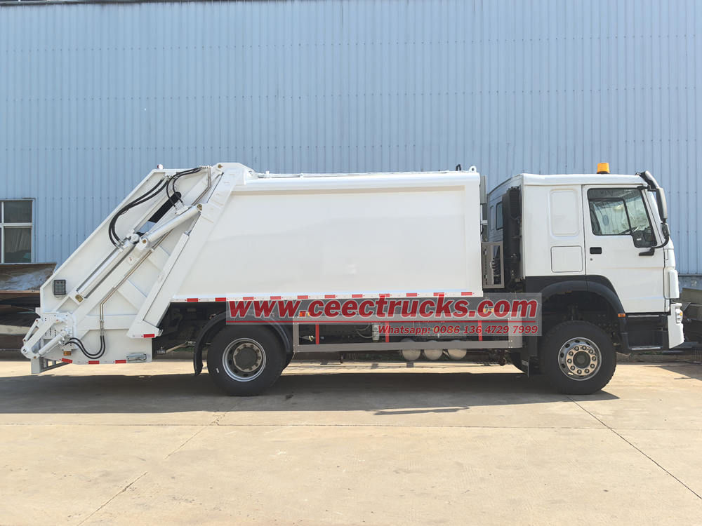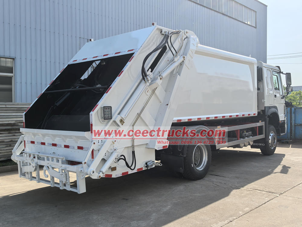 Камион са задњим утоваривачем HOWO од 14 кубних метара је високо ефикасно и поуздано возило дизајнирано за управљање отпадом у градском и приградском подручју. Са међуосовинским растојањем од 4600 мм, мотором WP10.300E22 од 300 КС, Евро 3 дизел стандардом емисије 9.726Л, мењачем HW19710 са брзим мењачем, гумама 295/80R22.5 са укупно 7 ком, клима уређајем, USB-ом, помоћи у управљању правцем и 3 седишта. Горњи део каросерије је канта за смеће од 14 кубних метара, задњи део је механизам за окретање канте, постоје 3 начина за управљање камионом утоваром и истоваром.
