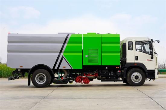 Камион за чишћење Howo 4x2 је машина са снажним перформансама чишћења и ефикасним радом, погодна за чишћење градских улица, индустријских паркова и административних зграда. Његов резервоар за сакупљање прашине од 5 кубних метара и резервоар за воду од 4 кубних метара, у комбинацији са кућиштем машине за чишћење од нерђајућег челика дебљине 4 мм, обезбеђују издржљивост и ефикасно чишћење. Опремљен дизел мотором од 300 КС и HW мењачем са 10 брзина, пружа снажну и глатку вожњу.