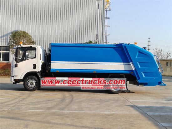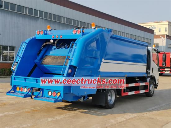 ИСУЗУ лаки задњи утоваривач се углавном састоји од Исузу шасије, каросерије компактора, уређаја за компресију, хидрауличког система и управљачког система. Током радног процеса, смеће се утоварује у каросерију возила, а затим се компресује кроз хидраулични систем како би се постигло смањење смећа. ИСУЗУ 4ХК1-ТЦ дизел мотор са 190КС, ИСУЗУ МЛД 6-степени мењач са 6 напред и 1 назад, прилагођено тело закривљеног облика, тело резервоара за набијање смећа од 10ЦБМ, ЦАН-БУС електрични и хидраулични систем управљања вентилима.