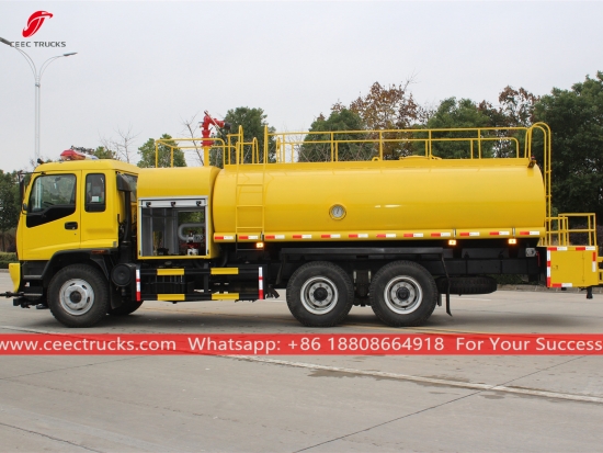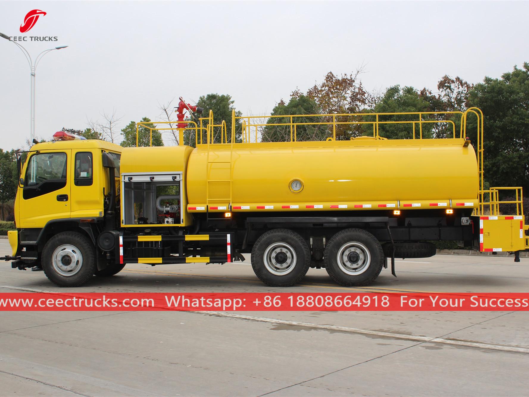 ИСУЗУ 14.000Л камион противпожарне воде, шасија са левим воланом ИСУЗУ ФВЗ, БРЗИ ручни мењач са 8 брзина, дизел мотор ИСУЗУ 300КС, ватрогасна пумпа познатог бренда, са предњом, средњом и задњом млазницом за прскање по избору. Све слике и логотипи зависе од захтева.