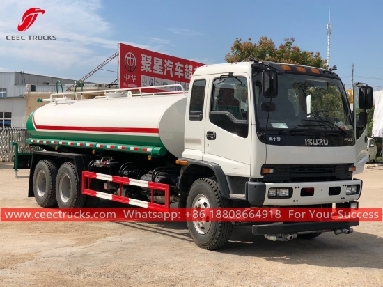 ИСУЗУ 15ЦБМ Водоводни камион (такође се зовеКамион цистерна за воду ИСУЗУ ФВЗ, топла продаја Камион за прскање воде ИСУЗУ, ИСУЗУ 15.000Л камион за прскање воде, камион за превоз воде на 10 точкова ИСУЗУ, нови камион за испоруку воде, камион цистерна за воду 6к4ИСУЗУ) јекористи се за испирање путева, озелењавање дрвећа и травњака, чишћење високих зграда, изградњу путева и фабрика. Има функције испирања, заливања, транспорта воде и гашења пожара.