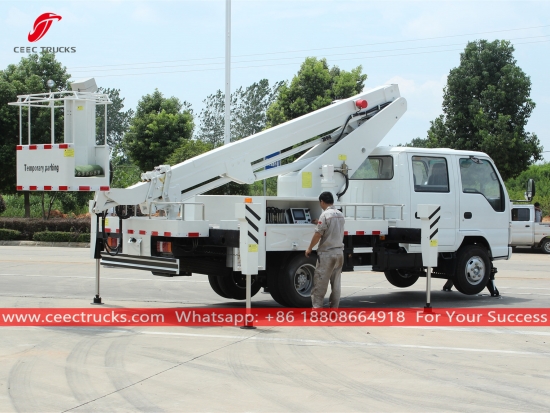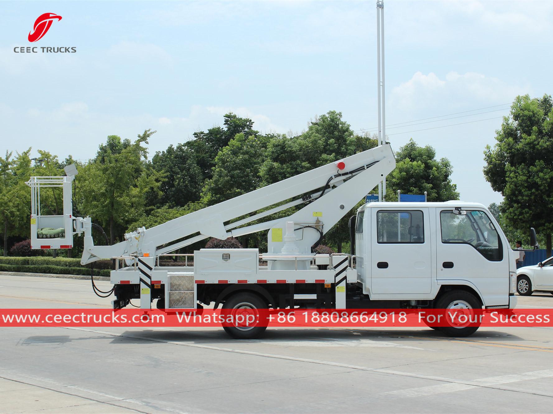 ИСУЗУ 16м телескопска дизалица (такођезове Камион кран ИСУЗУ, дизалица, ИСУЗУ аутодизалица, хидраулична телескопска дизалица, ИСУЗУ покретно возило за подизање, дизалица на камиону)идеалан је за одржавање семафора, уличне расвете, уређење дрвећа, чишћење/постављање табле и друге радове на високом нивоу.