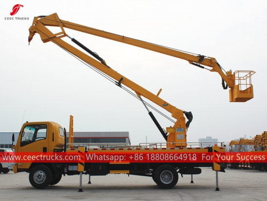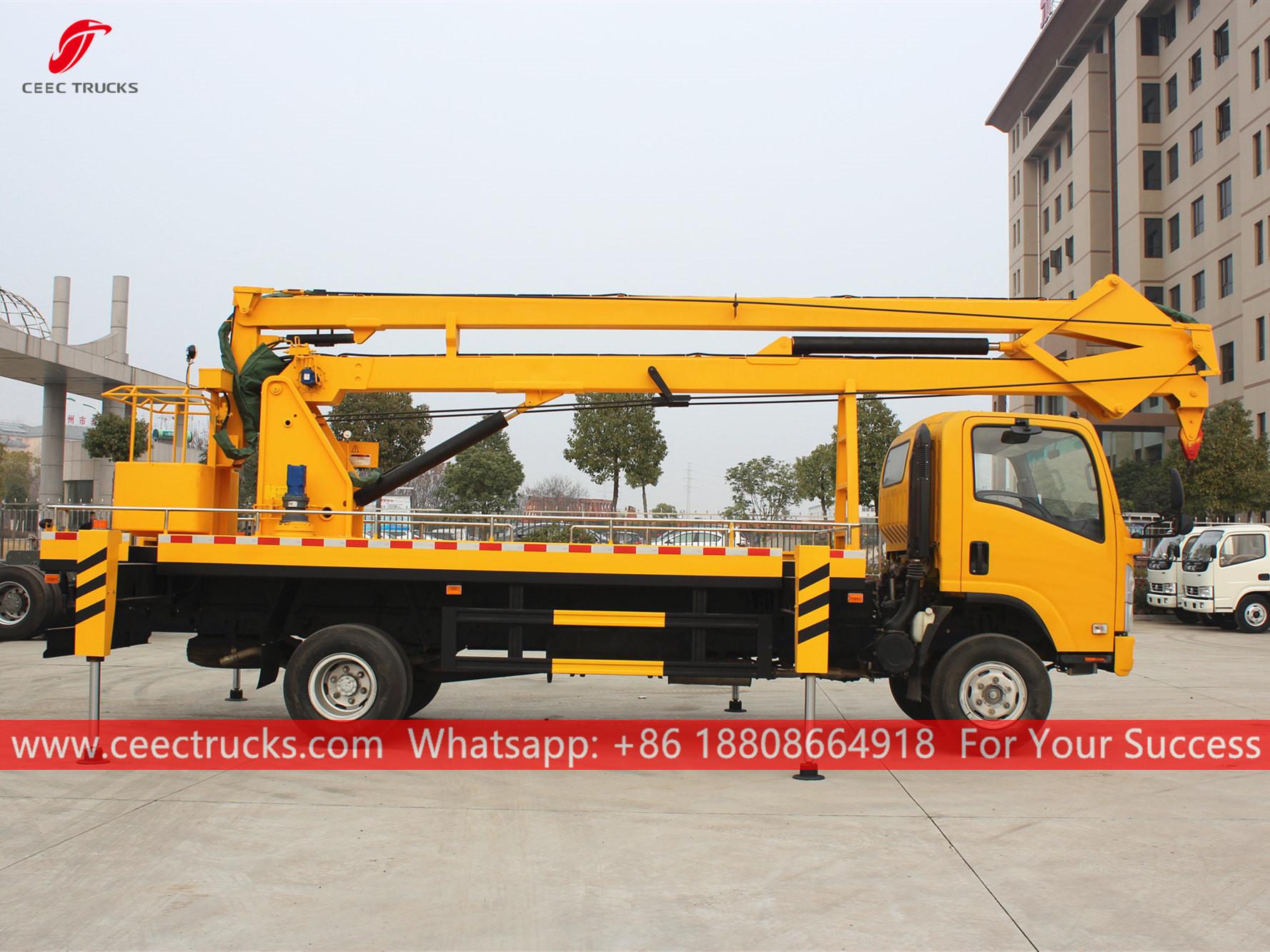 ИСУЗУ 18м Ман лифт камион (такођезове Камион са платформом ИСУЗУ, ИСУЗУ Манлифтер, ИСУЗУ Камион монтиран на дизалицу, камион са корпом за подизање руку на врућу продају, камион са високом платформом ИСУЗУ, возило са високом платформом)идеалан је за одржавање семафора, уличне расвете, уређење дрвећа, чишћење/постављање табле и друге радове на високом нивоу.