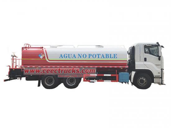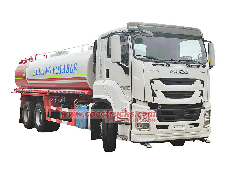 Исузу цистерна за превоз питке воде од 20 кубних метара (такође се назива Исузу камион за прскање воде 6x4, Исузу камион за превоз питке воде од 20 кубних метара, Исузу камион за превоз питке воде од 20 кубних метара, Исузу ГИГА камион за питку воду од 20 кубних метара, Исузу мобилни камион за превоз воде са 10 точкова, Исузу камион за превоз питке воде од 20 кубних метара) Користи се за транспорт и снабдевање водом, било да је у питању индустријска или пољопривредна вода. Погодно за употребу у урбаним подручјима са недовољним снабдевањем водом, у хитним случајевима спасавања, на градилиштима и у другим сценаријима. Камиони за транспорт воде за пиће су једноставни за руковање, безбедни и поуздани и представљају неопходну опрему за обезбеђивање безбедности воде за пиће.