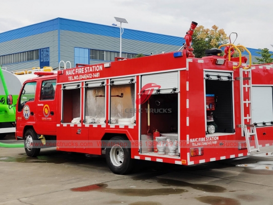 ИСУЗУ 4×2 водено ватрогасно возило, ИСУЗУ НКР Лефт Ханд Дриве модел 4к2 шасија, МСБ 5-брзински мануелни мењач, ИСУЗУ 130ХП дизел мотор, фарбање и логотипи зависе од захтева.