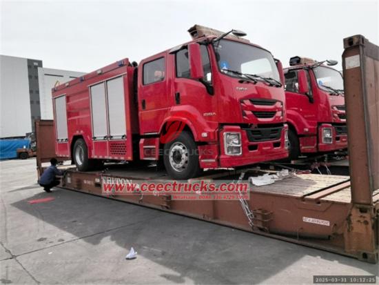 Новогодишње дизајнирано и прилагођено ватрогасно возило ISUZU GIGA 4X са монтираном ватрогасном пумпомСервис за посао гашења пожара. Базирано на новој шасији камиона ISUZU GIGA 4X, монтираном 4HK1-TCG60 дизел мотору од 205 КС и емисији од 5193 мл, стандарду емисије EURO 6. Прилагођена цистерна за воду од угљеничног челика од 5000 литара и цистерна за пену од нерђајућег челика од 500 литара, монтирана ватрогасна пумпа CB10/40 и монитор за пожар PL32, такође монтиран са плавим ЛЕД ротационим светлом, комплетна опрема за спасавање од пожара, све је то учинило ватрогасно возило популарним за међународне ватрогасне радове.