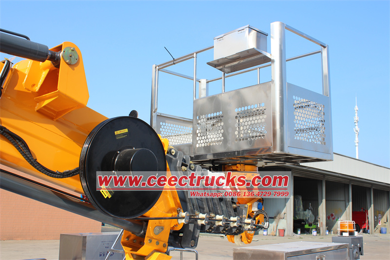 Камион са дизалицом ИСУЗУ КВ100 је дизајниран на основу јапанске шасије камиона ИСУЗУ 120ХП ЛХД, при чему је радна платформа главни функционални део радног возила, обично опремљена радном кашиком, опционо од материјала од нерђајућег челика или фибергласа, хидрауличког управљачког система и кутије за даљинско управљање, такође сигурносних уређаја. Оператери могу да обављају различите ваздушне операције у радној канти, као што су монтажа, одржавање, инспекција итд.Радни камион ИСУЗУ 20м са равном руком има одличне радне способности. Његова радна рука се може продужити хоризонтално или вертикално да покрије шири радни простор. Истовремено, возило је такође опремљено снажним системом напајања и стабилним контролним системом како би се осигурала сигурност и стабилност током рада.