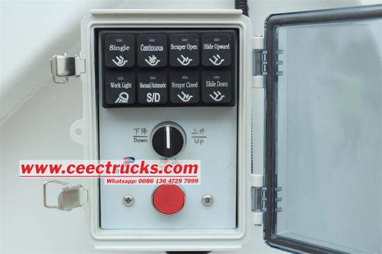 •Четири режима рада:Возило је опремљено са 4 режима рада, укључујући електронску контролну кутију у кабини, ручну хидрауличну ручицу за управљање на страни возача, електричну контролну кутију на левој страни пртљажника и ручну ручицу за управљање на десној страни пртљажника. Овај дизајн вишеструког система управљања не само да побољшава погодност рада, већ и осигурава поузданост у посебним околностима.