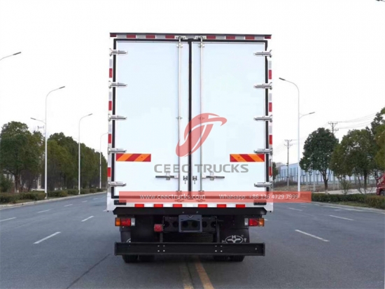 а–¶Структура каросерије хладњача је сендвич структура: Фиберглас + ПУ + фиберглас.Све дупле површине сендвич полиуретанске плоче и врата су100ммдебљина, дебљина плоче од фибергласа је2.5ммза спољашњу и унутрашњу кожу; густина полиуретанске пене је 45-50кг/м3. (Све је најбољи материјал у Кини и има одличне перформансе изолације).