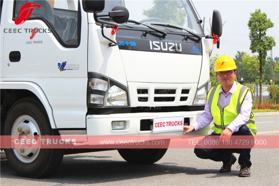 ИСУЗУ бренд 4Т телескопски камион кран на продају, дизел мотор ИСУЗУ технологије 120 КС, ручни МСБ 5-степени мењач за лак рад, опремљен са телескопском дизалицом од 4000 кг, такође има даљински управљач по избору, дужина сандука за терет може бити 4000 мм