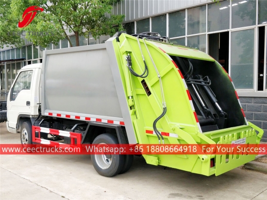 ИСУЗУ Камион за смеће са компактором (такође се зове камион за набијање смећа, возило за смеће ИСУЗУ 4 * 2 са задњим оптерећењем, потпуно ново компресијско возило за смеће, компактор за смеће на врућој продаји, кинески камион са компресором за смеће, произвођач камиона за компактор отпада) је дизајниран за свакодневни транспорт смећа у животним подручјима као што су све врсте градова, велике станице, луке и пристаништа, аеродроми и густо насељена подручја као што су индустријска и минерална предузећа и војне јединице.