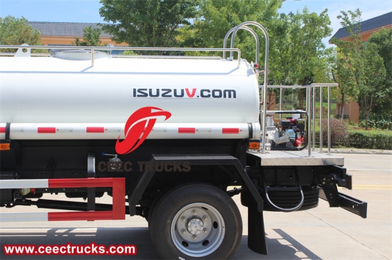 Камион за воду за пиће ИСУЗУ (такође се зовеКамион цистерна за питку воду ИСУЗУ, ИСУЗУ резервоар за воду од нерђајућег челика, камион за питку воду ИСУЗУ, камион за испоруку воде ИСУЗУ, камион за превоз питке воде ИСУЗУ по мери) је идеално возило за транспорт и дистрибуцију чисте воде. Његов велики резервоар за воду, пумпа високог притиска и систем прскалица, у комбинацији са конструкцијом од нерђајућег челика за храну, чине га основним средством за индустрије као што су гашење пожара, грађевинарство и пољопривреда.