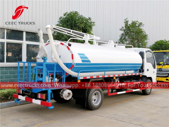 ИСУЗУ фекални усисни камион (такођезове вакум цистерна, ИСУЗУ 4А—2 камион за чишћење канализације, ИСУЗУ септичка јама, ИСУЗУ камион за чишћење канализације, ИСУЗУ камион за усисавање отпадних вода, произвођач усисивача)јекористи се за сакупљање, транспорт и испуштање течности као што су прљава вода, муљ, септичка, сирова нафта и чврсте ствари као што су ситно камење, цигле такође. Погодан је за чишћење канализације, септичке јаме, септичке јаме, сливника, итд. Широко се користи у области животне средине и санитације.