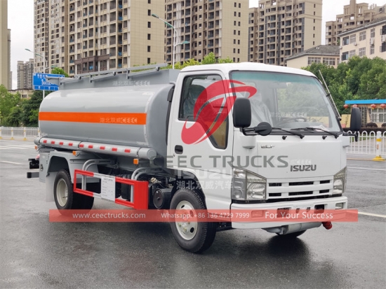 ИСУЗУ камион за допуну горива од 5.000 литара, шасија за лака оптерећења ИСУЗУ 4А—2, мануелни мењач са 5 брзина, дизел мотор ИСУЗУ 98 КС, стандардна цистерна за гориво од угљеничног челика, пумпа за уље познатог бренда као стандард. Све слике и логотипи зависе од захтева.
