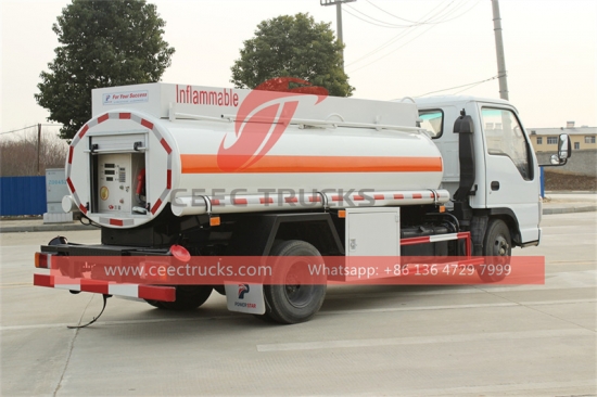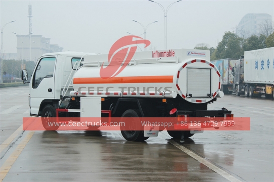 Исузу мини 5000Л камион цистерна за уље је економичан и практичан мали камион погодан за различите потребе пуњења горива на кратким раздаљинама. Исузу мини камион цистерна има укупну дужину од 5,8 метара, ширину од 2,15 метара, висину од 2,35 метара, међуосовинско растојање од 3,36 метара и укупну тежину од 4495 кг. Има добру проходност и флексибилност.