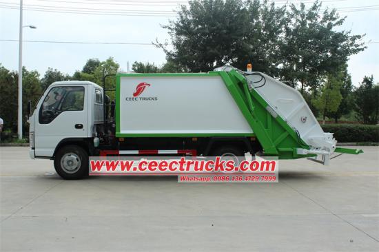 Исузу мини камион за смеће са задњим утоваривачем од 5 кубних метара, који је опремљен четвороцилиндричним редним дизел мотором од 2999 мл 4КХ1ЦН6ЛБ, који испоручује максималну снагу од 88 кВ / 120 КС. Тело компактора има капацитет од 5ЦБМ, а укупни капацитет резервоара за канализацију је 200Л+100Л. Са одличним перформансама заптивања и једноставним системом контроле рада, погодан је за различите задатке градског сакупљања и транспорта смећа, нудећи високу ефикасност и заштиту животне средине. Идеалан је избор за савремено управљање градским отпадом.
