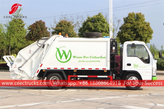 ИСУЗУ камион за отпад са компактором (такође се зове камион за набијање смећа, ИСУЗУ 4 * 2 задњи утоваривач, потпуно ново возило за компресовање смећа, компактор за смеће на врућој продаји, кинески камион са компресором за смеће, произвођач камиона за одлагање отпада) је дизајниран за свакодневни транспорт смећа у животним подручјима као што су све врсте градова, велике станице, луке и пристаништа, аеродроми и густо насељена подручја као што су индустријска и минерална предузећа и војне јединице.