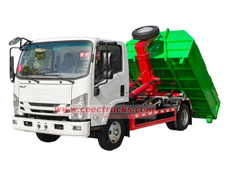 Исузу роро камион са куком за подизање од 5 тона је високо ефикасно и поуздано возило дизајнирано за управљање отпадом у градском и приградском подручју. Са међуосовинским растојањем од 3360 мм, Исузу 4HK1-TCG61 мотором од 190 КС, Евро 6 дизел стандардом са емисијом од 5.193Л, Исузу МЛД мењачем са 6 брзина, 235/75R17.5 гумама са укупно 7 ком, клима уређајем, УСБ-ом, помоћи у управљању правцем и 3 седишта. Приколица и шасија имају одвојену структуру. Захваљујући хидрауличном уређају са куком на задњем делу возила, може се брзо повезати и транспортовати стандардне канте за смеће, остварујући режим циркулације „једно возило, више канти“.