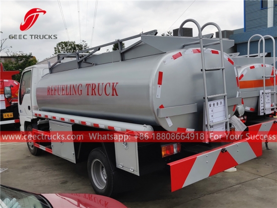 Камион за гориво ИСУЗУ 5.000 литара, шасија ИСУЗУ 4×2, ручни мењач са 5 брзина, дизел мотор ИСУЗУ 130 КС, стандардна цистерна за гориво, пумпа за уље познатог бренда као стандард. Све слике и логотипи зависе од захтева.
