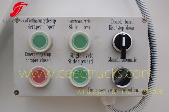 Изнад емисије ЦЕЕЦ произведенИСУЗУ5ЦБМ смеће цкомпресор камионКомпактни систем, који се углавном састоји од Нагибни уређај(опционо за канте за смеће од 240Л и 360Л, 660Л и 1100Л);Слиде Плате; Сцрапер; Потисна плоча и задња задња капија.Сви делови су добро дизајнирани, јаке структуре и мале сопствене тежине.