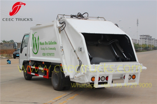Камион компактор за смеће ИСУЗУ 6ЦБМ, оригинална ИСУЗУ 4*2 шасија ЛХД, 4ЈБ1ЦН мотор са 98КС, МСБ 5-степени мануелни мењач, као за тело компактора смећа од 6 кубних метара, материјал је челик високе чврстоће са дебљином стране 4мм и под 5мм