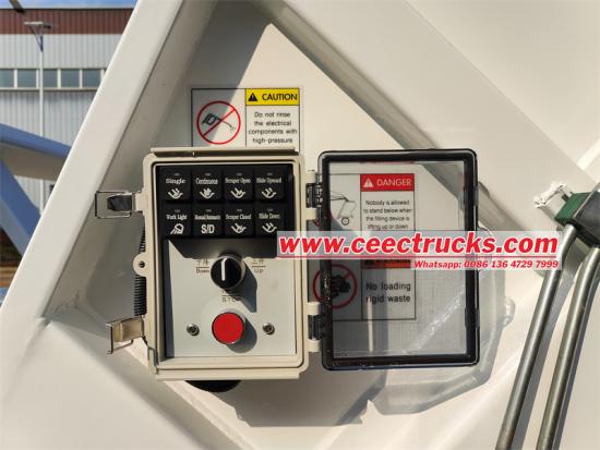 • Истовар и ресетовање: Када је кутија за смеће пуна или треба да се истовари, возач користи дугме на контролној табли како би се потисна плоча повукла у почетни положај. Након тога, систем куке поставља кутију за смеће на одређено место за истовар.