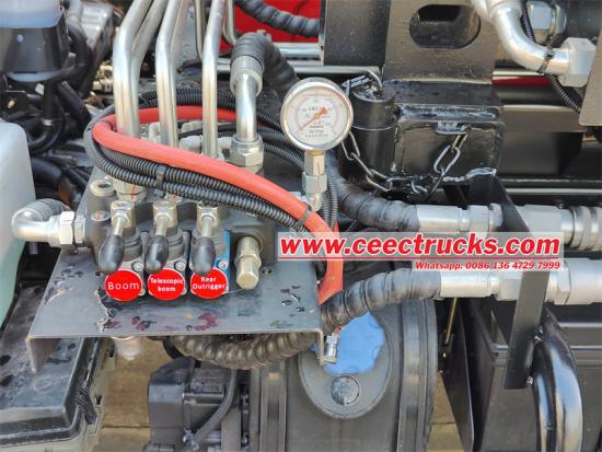 Систем куке Исузу 7 цбм Хоок Лифт углавном се састоји од крака куке, хидрауличног цилиндра, контролног вентила, прикључног уређаја итд. Ручица куке је направљена од материјала од легираног челика високе чврстоће, са довољном чврстоћом и крутошћу да издржи тежину контејнера за смеће и различите силе током рада. Хидраулични цилиндар обезбеђује снагу која омогућава краку куке да заврши подизање, ротацију и друге радње.