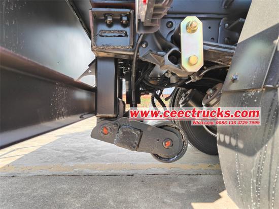 • Повезивање и подизање:Када возило стигне на место за сакупљање смећа, возач покреће хидраулични цилиндар притиском на дугме на контролној табли. Хидраулични цилиндар гура ручицу куке надоле док не дође у контакт са куком на канти за смеће и чврсто се споји. Након тога, хидраулични цилиндар наставља да ради, подижући куку заједно са контејнером за смеће док се контејнер за смеће потпуно не одвоји од земље и фиксира на возило.