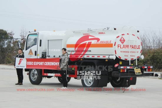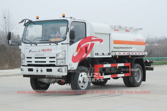 Камион цистерна за гориво ИСУЗУ од 4.000 литара, шасија ИСУЗУ 4А—4, МЛД ручни мењач са 6 брзина, дизел мотор ИСУЗУ 190 КС, цистерна за гориво високог квалитета од угљеничног челика, пумпа за гориво познатог кинеског бренда као стандард. Све слике и логотипи зависе од захтева.
