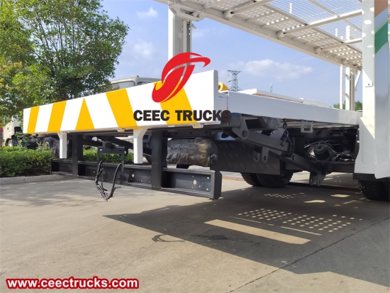 Носач аутомобила има двослојну структуру утоварне платформе, а горња утоварна платформа се може подићи и доле под дејством уређаја за подизање како би се олакшало утовар.
