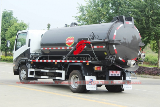 ИСУЗУ 8.000 литара вакумски усисни камион, ИСУЗУ 4к2 лева рука шасија, МЛД 6-степени мануелни мењач, ИСУЗУ 190 КС дизел мотор, јака усисна цистерна, позната марка вакуум пумпа, фарбање и логотипи зависе од захтева.