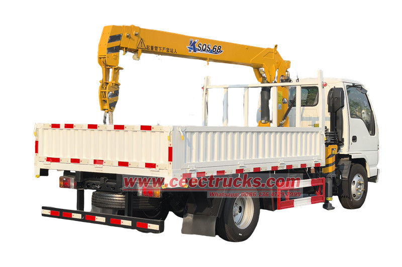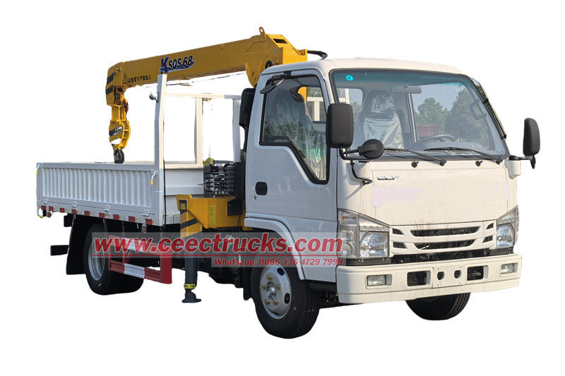 Исузу ЕЛФ камион са дизалицом од 3,2 тоне, такође назван Исузу ЕЛФ камион са дизалицом од 3,2 тоне, телескопски камион са дизалицом, сервисни камион, телескопски камион са дизалицом итд. Возило је модификовано на шасији Исузу 100П, опремљено је Исузу 4КХ1ЦН6ЛБ мотором од 120 КС, снажним, упареним са МСБ 5-степеним мењачем, глатким мењањем брзина и дизалицом СКС-68 на задњем делу каросерије возила, са великом носивошћу и дометом, и теретном сандуком димензија 3000x2100x450 мм испод, који може лако да носи тешке предмете подигнуте куком дизалице.